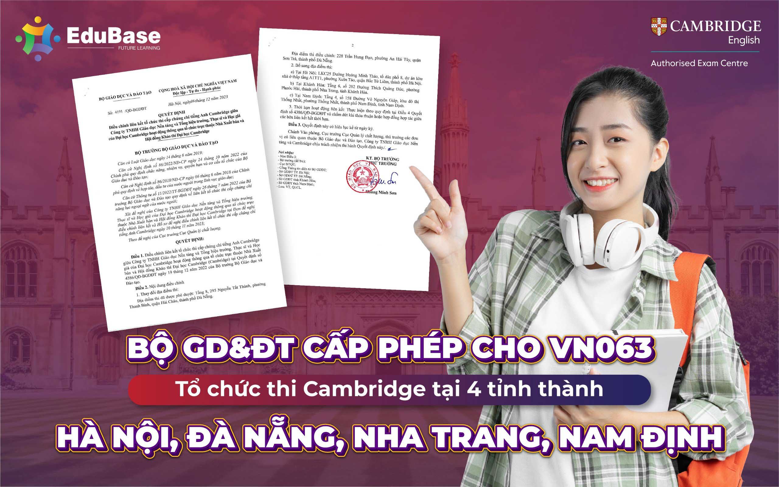 Tin tức nổi bật Bộ GD&ĐT đã cấp phép cho VN063 tổ chức thi Cambridge tại 4 tỉnh thành: Hà Nội, Đà Nẵng, Nha Trang, Nam Định Đọc thêm »